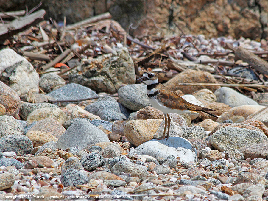 When you look at a Killdeer (Charadrius vociferus) in isolation it looks boldly-striped—the antithesis of what you’d expect from an animal trying to blend into its background. But in natural settings the black-and-white stripes work very effectively to break up the silhouette of the bird, making it surprisingly hard to spot against the background. At Hammonsasset State Park, Connecticut, USA.