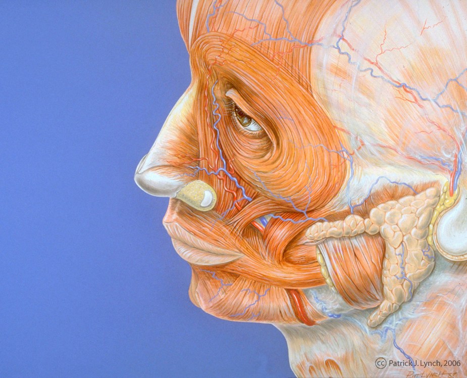 face_anatomy_superficial-copyright-lynch-2007 Superficial anatomy of the face. Gouache on board. Patrick Lynch on January 22, 2017