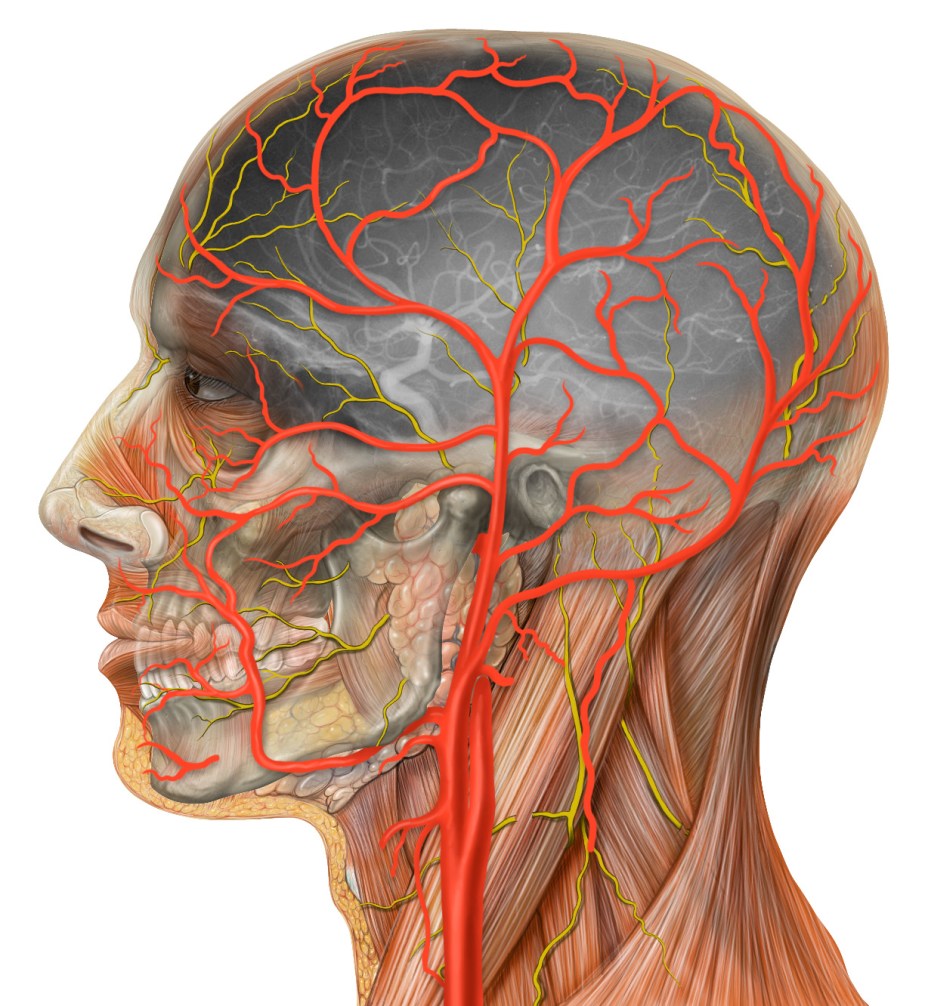 lat-head-diagnostic-w_angio-copyright-lynch-2007 Lateral view of head anatomy drawn in Photoshop, matched with an angiogram of the same viewpoint. Photoshop illustration. Patrick Lynch on January 22, 2017